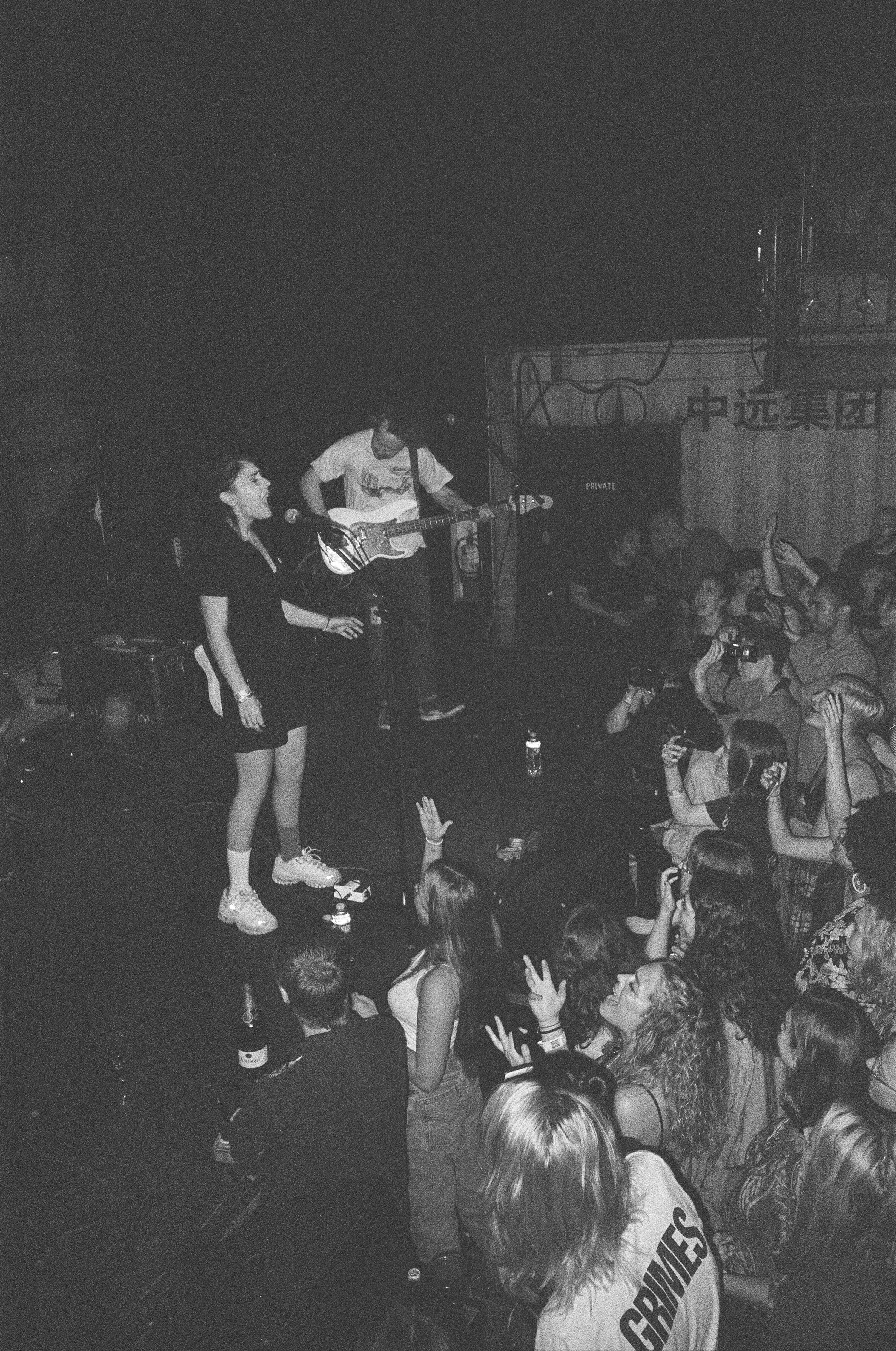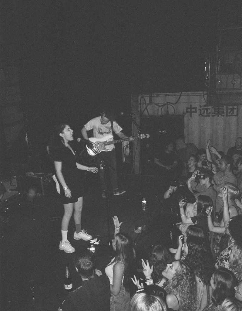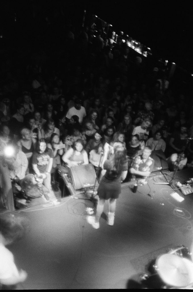 The time has finally come for Samia and her band to finish off the night after two killer performances by Squirrel Flower and Indigo De Souza. They walk on to the stage with glass flutes and a bottle of champagne because this is homecoming and they’re ready to celebrate. Her live set is just as heartwarming and soul soothing as any of her recordings but the performative aspects make it an experience not to be missed. The years of acting come out physically as she improvises vogue moves on the floor and sings with swagger while sitting on Noah’s bass drum. She carries herself with complete confidence and the crowd is loving every minute of it. I look around and realize that everyone within the first ten feet of the stage is singing along and clinging to every word that comes out of Samia’s mouth. One girl is bawling profusely.
