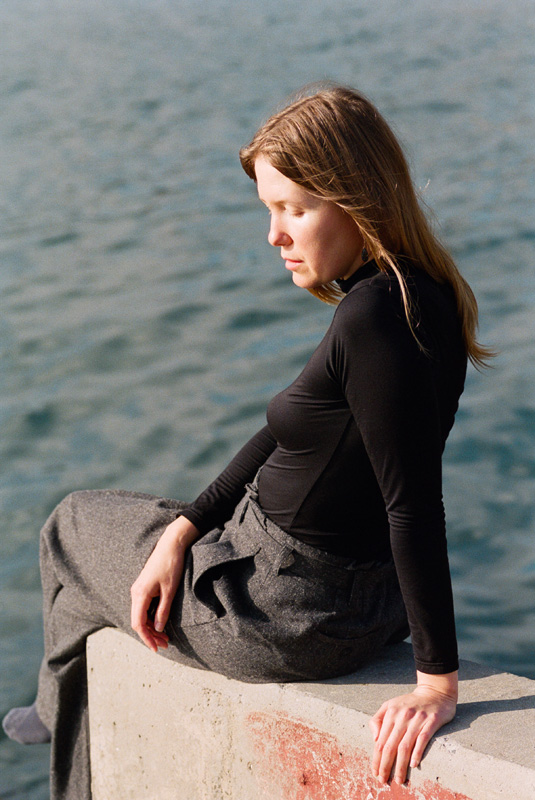 While the imagery is evocative in its stillness, her explanation is almost contrarily practical. This sort of twist on intention is what I personally find so curious about Aerial as an artist. About the video, she says, “I’ve always thought cranes were beautiful, so when Luca mentioned his idea to shoot someone in a slow zoom on a crane I was hooked. I thought, if we can get a crane it will be so stunning to see someone dangling in the sky like that. Finding the crane was pretty daunting and at some points seemed pretty unlikely. But one day we went down to Red Hook, drawn by the many cranes permanently perched by the water and hoping to gain access. We were hitting a lot of discouraging dead ends when we stopped by our friend Benny’s record shop and he, magical person that he is, said he knew a guy, Preston, with a homemade 30 ft crane built by an artist to transport his large sculptures. Support your local record stores!”