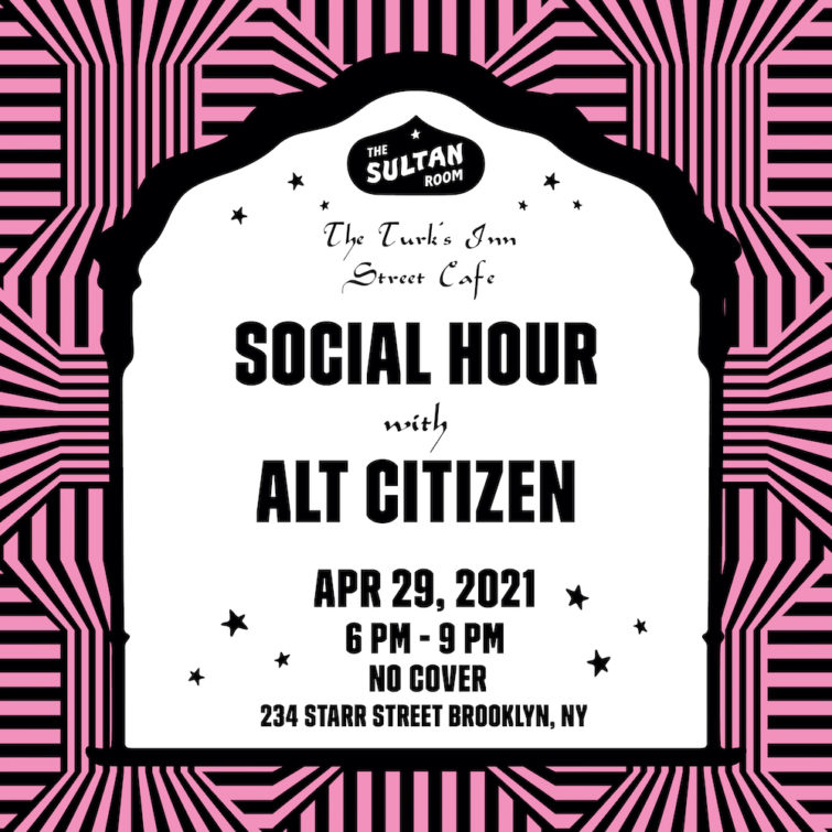 You’re invited to socialize with us IRL! It’s been a minute, but we’re having a social hour next Thursday, April 29th at The Sultan Room, complete with drinks, DJs, and zines at their sidewalk cafe. Excited to be face to face, 6 feet apart, and masked up with you all.