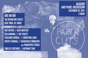 Come to Paper Cuts Bookstore Tour Edition 3! A Zine Reading and Panel Discussion featuring: Jack Bratich from the ABC No Rio Zine ...