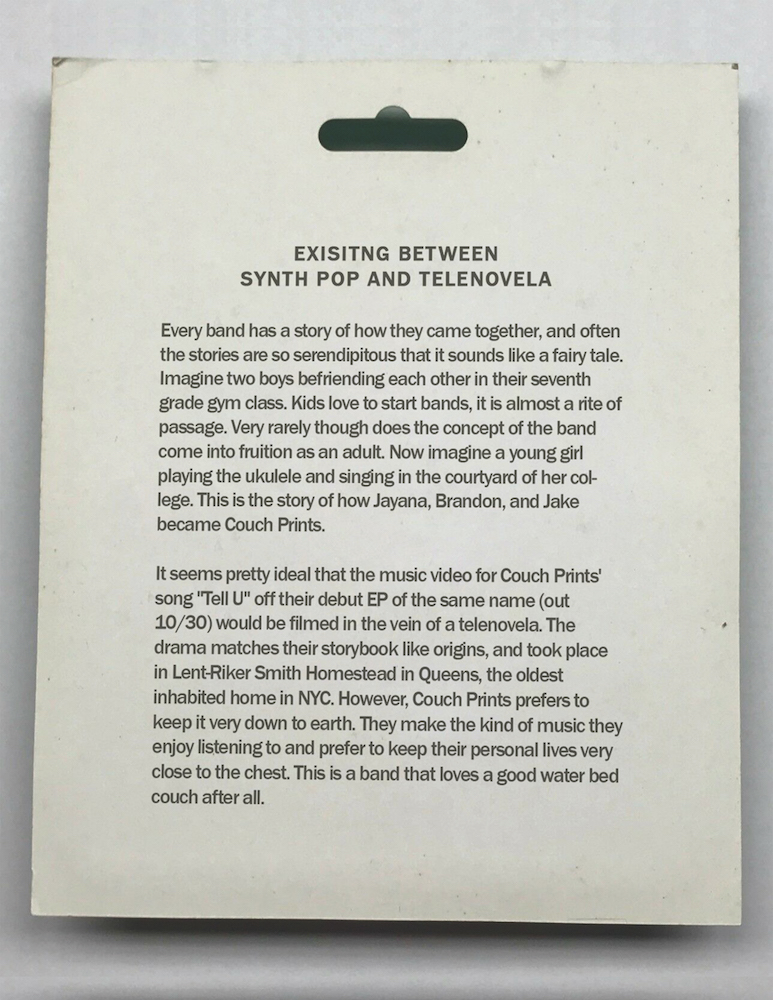 Over the course of the last 4 years, we’ve worked on a bunch of different genres, our tastes can vary a bit, but Couch Prints is basically the middle Venn diagram category where the shared loves we’ve had merge. When we first started the project a few years ago, we came together with the idea of making a synth-pop album, because that was definitely the biggest shared connection. As we progressed though we started to take more inspo from music that was slightly more fringe, like dance and bits of experimental. Our very first (unreleased EP) was a lot more dancey, but we felt a little nervous to put it out. Especially in the beginning because there was this lil golden age around 2016 where a lot of good pop was coming from David Dean Burkhart’s Youtube channel, and we were really inspired to become part of that world. That’s more where the inspiration behind “Of Drawing” and “Tell U” came from. Since then we’ve grown a ton as musicians and gained more confidence in regards to wanting to release something we felt was more true to us. So with this EP we wanted to expand on those initial ideas and incorporate more of our influences in dance and experimental again.