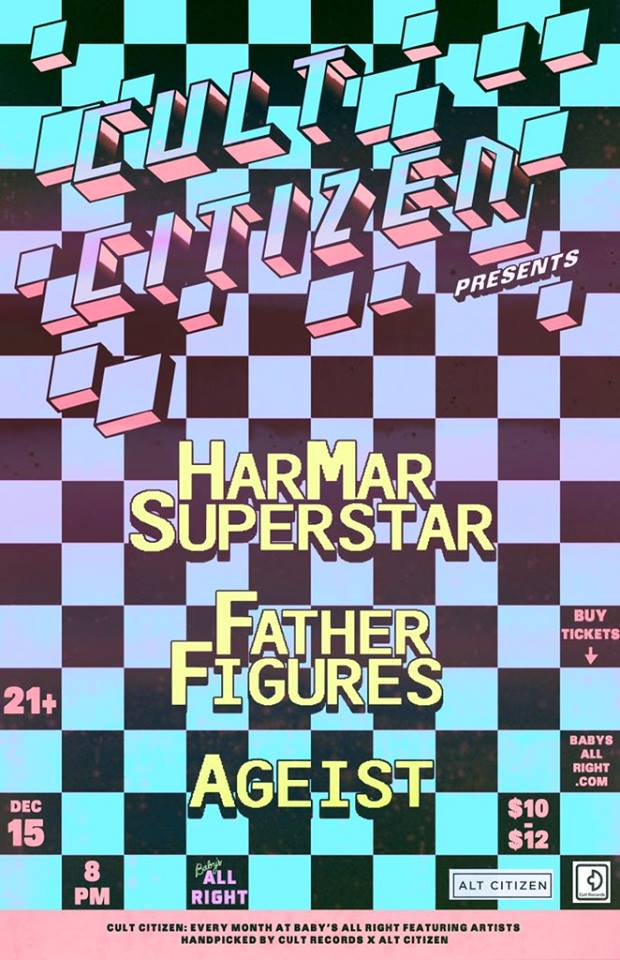 Tis’ the season! Come hang at Baby’s All Right on December 15 for an Alt Citizen x Cult Records monthly party Cult Citizen. This month we present Cult Records very own Har Mar Superstar, Father Figures, and Ageist. See you there!