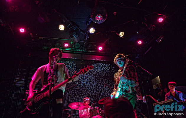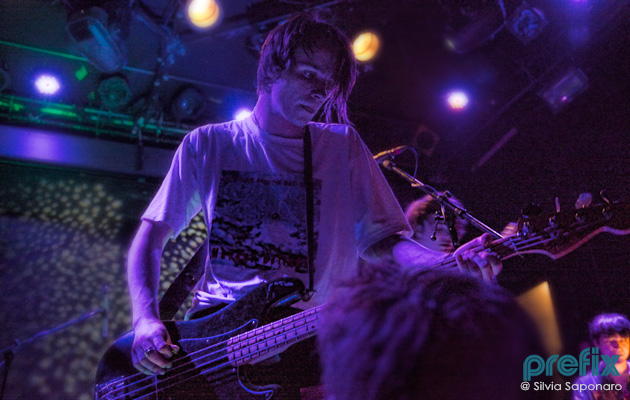 Fortunately, pushing into the back room of Pianos led you into a more intoxicating and intimate space where you could bear witness to Autre Ne Veut, the moniker for an angst-ridden Arthur Ashin, filling the crammed room with his falsetto. The R&B, ambient vibe continued into the next set as well with inc. coming on stage. The brothers, Andrew and Daniel Aged, held a almost hypnotic spell over fans that didn’t seem to mind being pressed against each other in the modest-sized space. Warping genres that somehow veered from R&B to classic rock, if by some unlikely chance you weren’t into the music, just staring at Andrew Aged hair would have still kept you riveted (slicked hair parted in the middle tied into a knot on the back). Another anticipated musical act of the night was DIIV, a raucous surf/garage rock band with songs built around massive guitar riffs. With smoke billowing up from the crowd and the use of ski masks while singing, the Nirvana-inspired group and fans reveled in performances like “Air Conditioning” and “Sometime.”