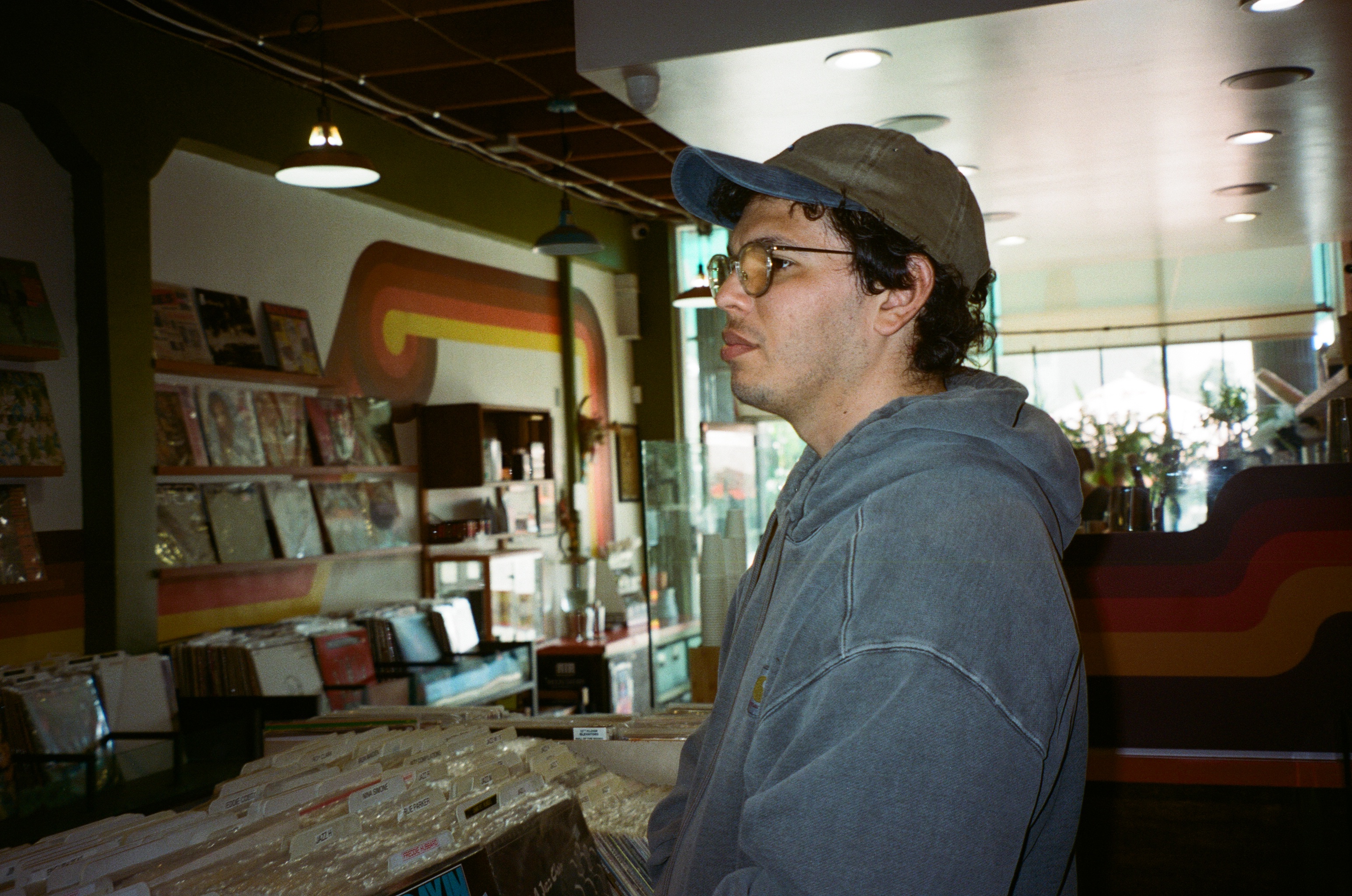 I got to sit down with Nacho at Cosmic Vinyl, a warm, eccentric vinyl/coffee shop in the heart of Echo Park, to get the inside scoop on his new album and dig in on details of his origin story leading up to the big release. Before we dove in, I ordered a typical LA afternoon pick-me-up (lavender oat milk matcha latte) while Nacho stuck with his handy dandy R.E.I. water bottle. Clocking my surprised, mistrusting look, he offered a quick explanation of how his esteemed acupuncturist recently directed him to 86 caffeine and substitute water, the miracle liquid. I quickly learned that Nacho had a detailed explanation for all of his decisions, no matter how big or small.