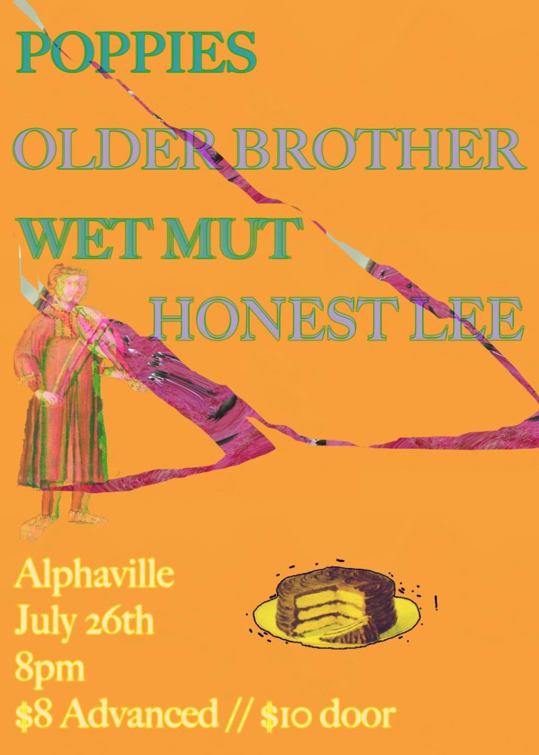 It can feel tedious watching the same tired and ol’ bands in the same locker-room music venues. But stop by Alphaville on Wednesday the 26th to catch some young and fresh talent. Local band Poppies, who just released the thoroughly-enjoyable-and-likely-better-live Good EP, headline alongside Older Brother, Wet Mut and Honest Lee.
