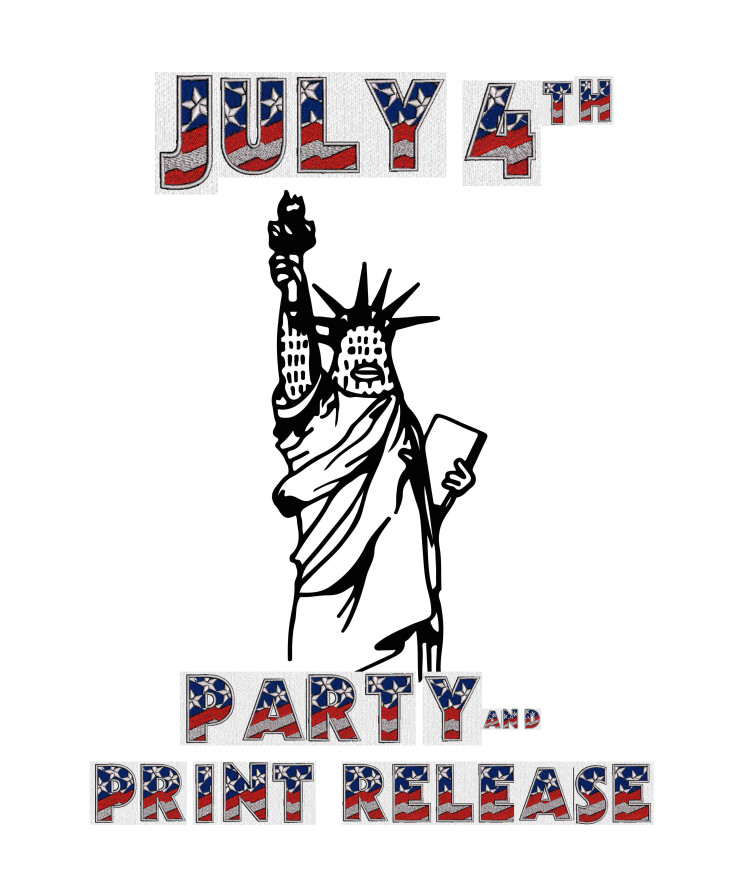 This 4th of July, artist Brandon Sines will be hosting a release party at Alt Space for an exclusive, patriotic print of Frank Ape, your favorite pop culture enthusiast. Available only online or in-store at Alt Space, Sines’ new print — aptly titled “Frank Liberty” — finds the docile beast posed as one of the biggest symbols of freedom ‘murica: the Statue of Liberty. This print will run as an edition of 20 16 x 20″ one-color screen prints on 100lb pearl white French paper + 5 hand-embellished prints.